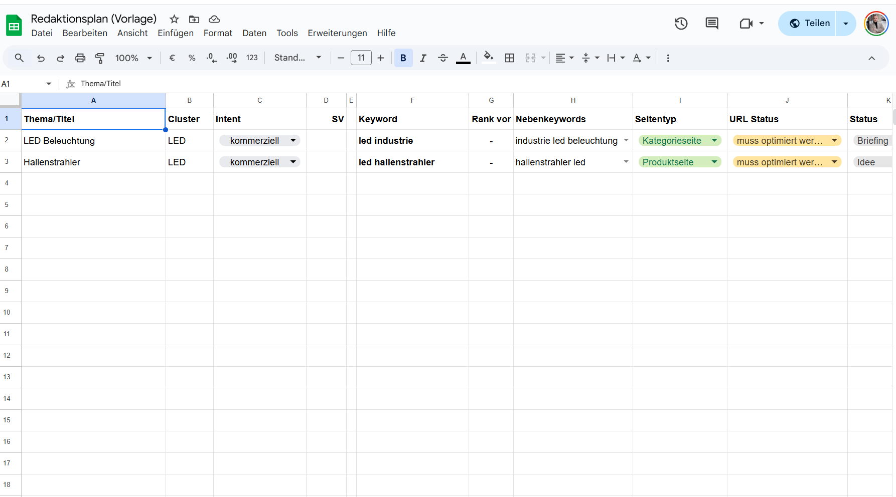 Download: Beispielhafter Content- & Redaktionsplan (Google Sheet)