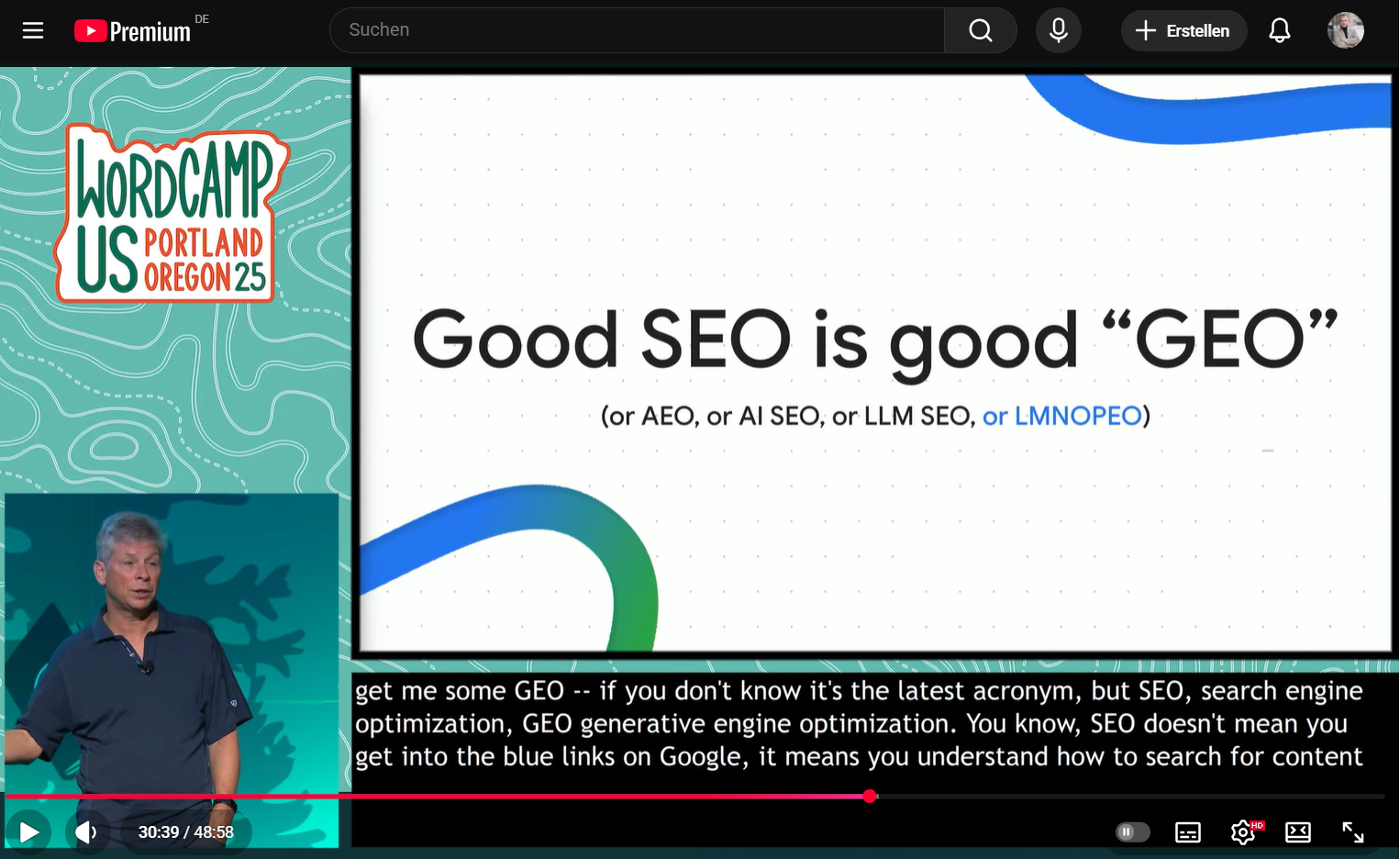 Selbst Danny Sullivan von Google sagt, Gutes SEO = Gutes GEO. Quelle: https://www.youtube.com/watch?v=ZF_sxLdfTbY