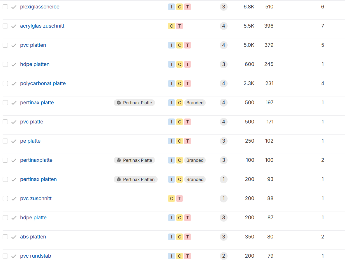 Ein Kunststoffhersteller veröffentlicht einen Glossarartikel zum Begriff „Was ist POM-C?“ mit umfassenden technischen Erläuterungen. Der Beitrag erzielt Sichtbarkeit für das informational Keyword – und verweist gezielt auf die Produktseite „POM-C Platten kaufen“. Dort finden sich Preise, Lieferformen und ein Angebotsformular. Diese Kombination aus Sichtbarkeit (Awareness) und klarer Handlungsoption (Conversion) bringt regelmäßig qualifizierte Anfragen – und zeigt, wie man die Funnel-Logik konkret umsetzt.